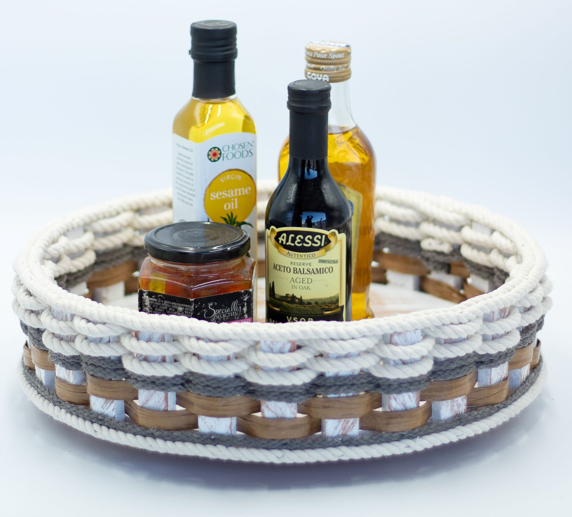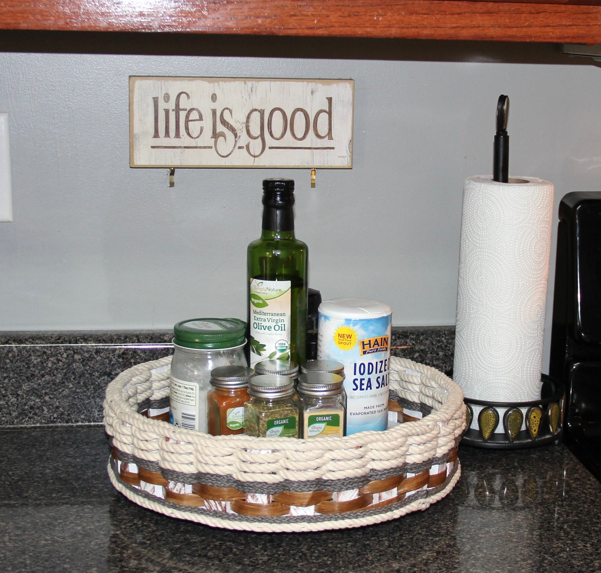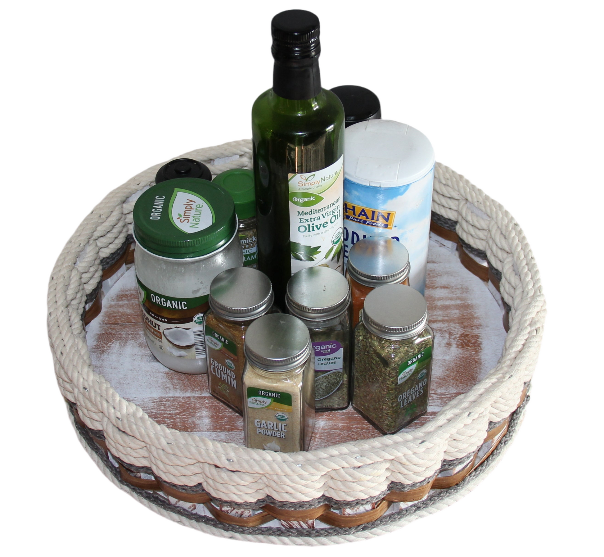 Our 13 inch Lazy Susan will create so many different looks and can be used for multiple uses. It looks great in your kitchen for cooking oils and spices! Or it could be used for your fresh fruit. Also looks great when entertaining for all your condiments or simply put in a 12 inch serving dish inside the basket, this could be a plastic chip and dip round tray or a low 12 inch serving bowl. Whatever you use it for, it will not be lazy! 13x13x4