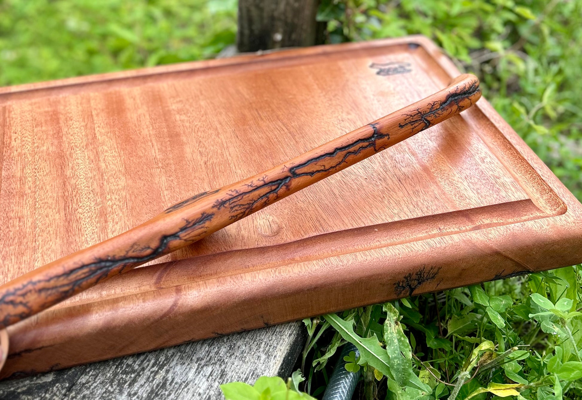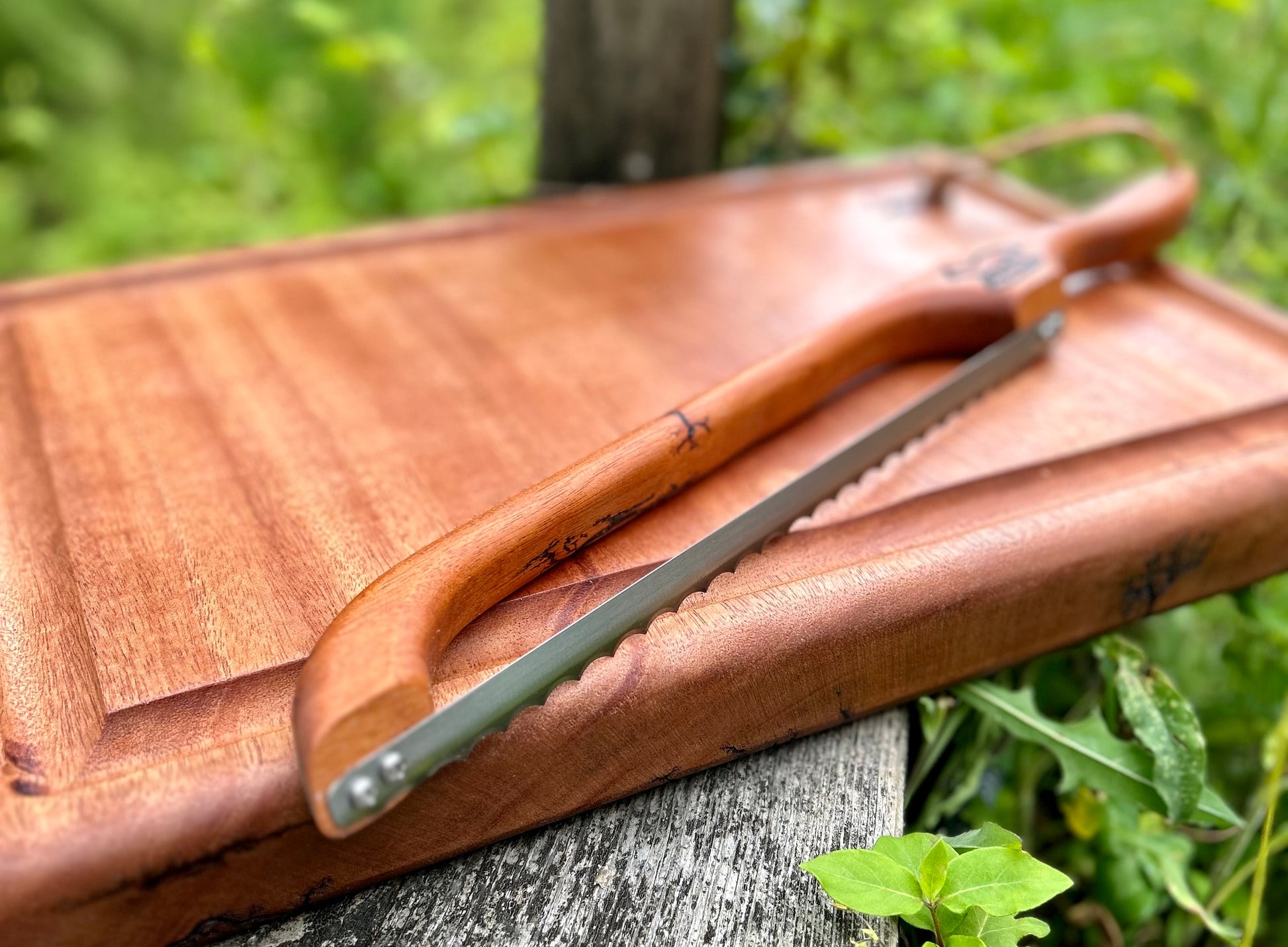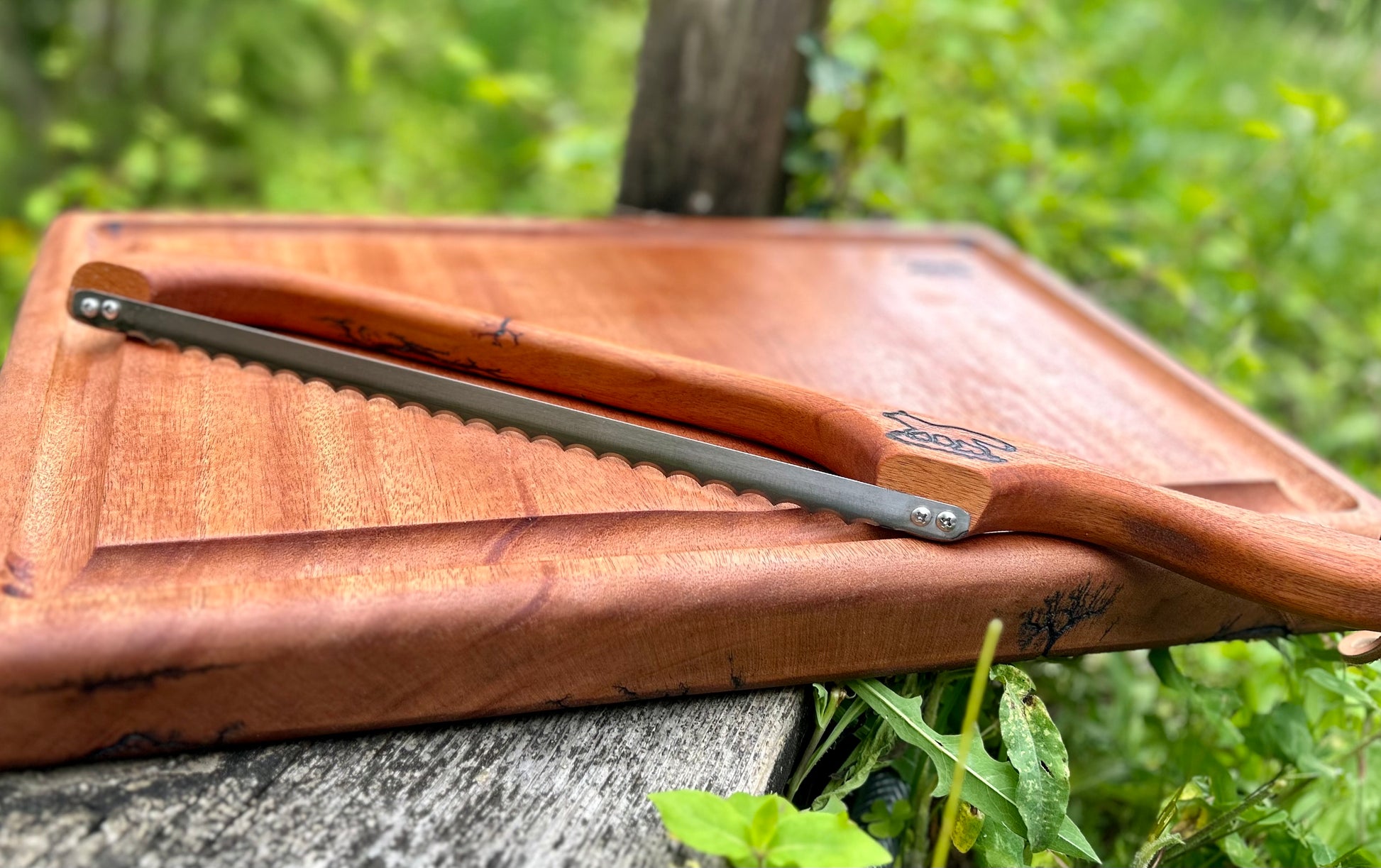 Beef Brisket Mahogany Fractal Burnt Bow Knife and Mahogany Fractal Burnt Cutting Board Set