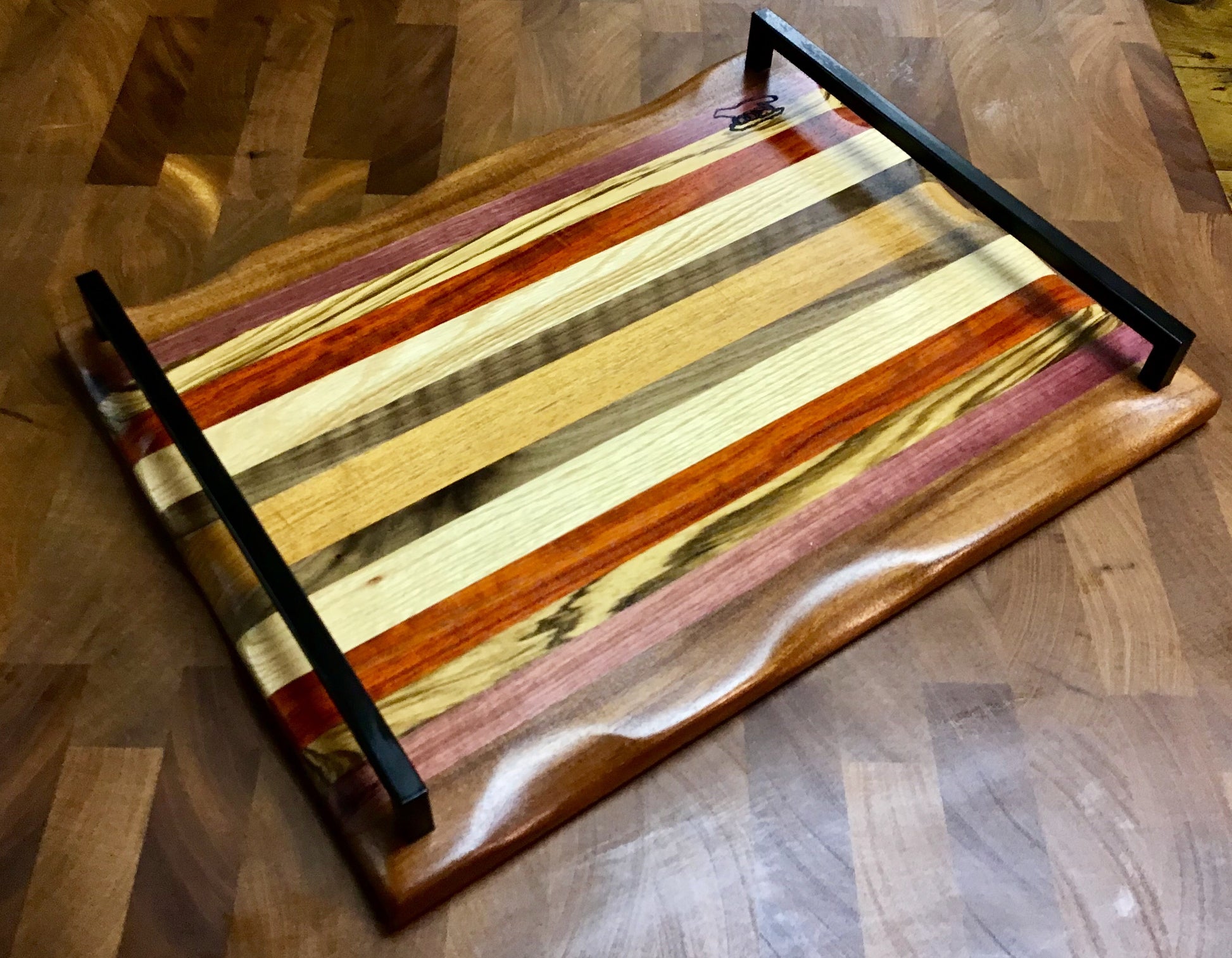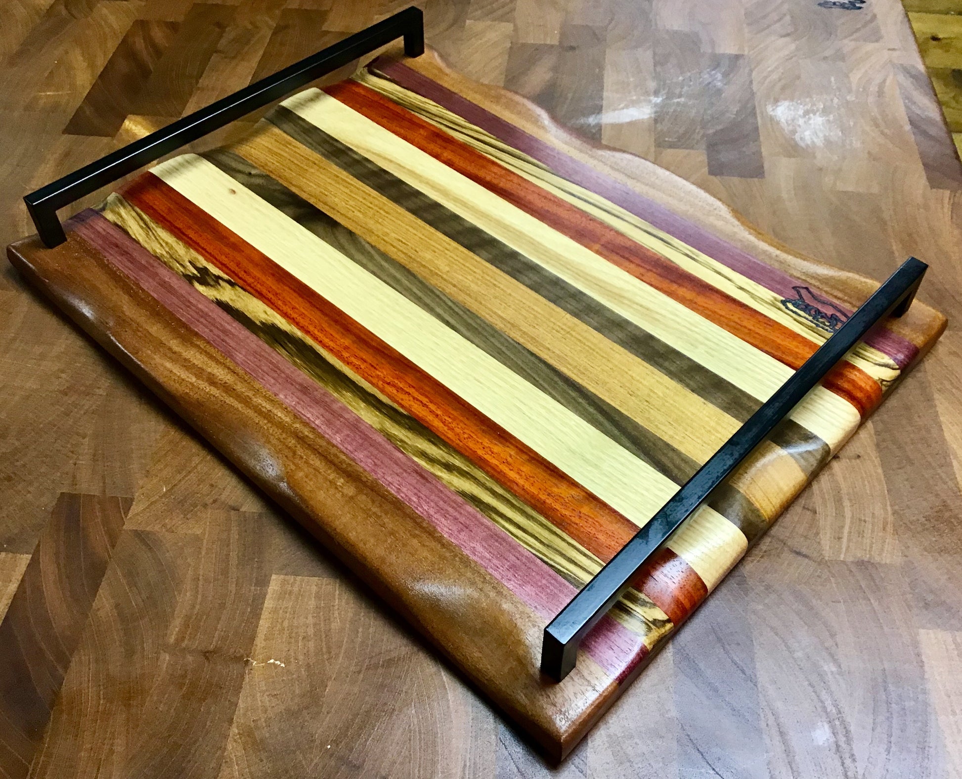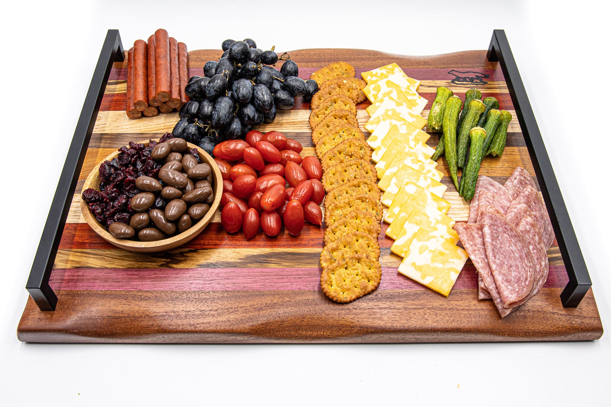 Charcuterie Board-Exotic Wood Stripes w/handle