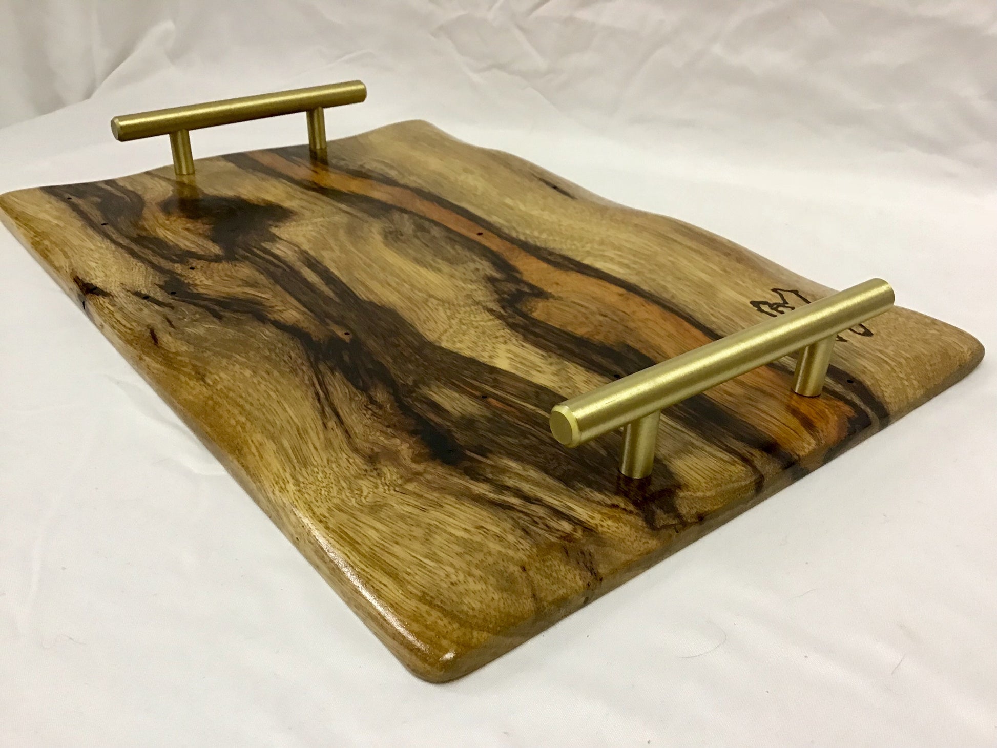 Do you need a classy charcuterie Board that you can pick up with handles? Serving your friends and family with this board is nothing short of elegance. The Black Limba Wood is such a beautiful wood. It will vary with knots and colors. Just pick your favorite handle.