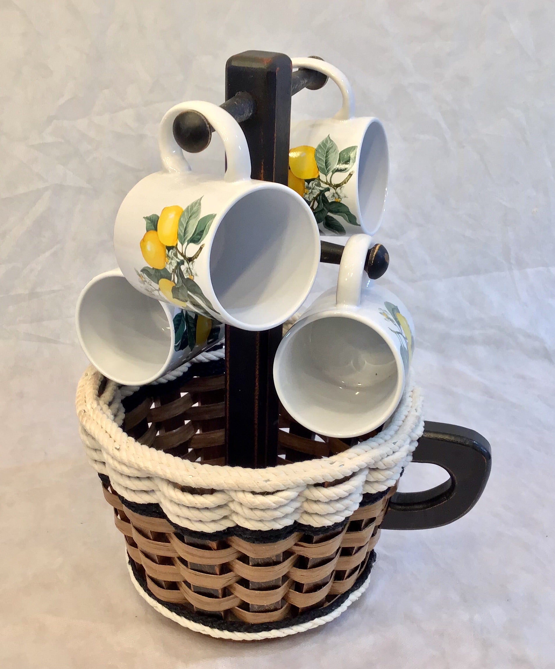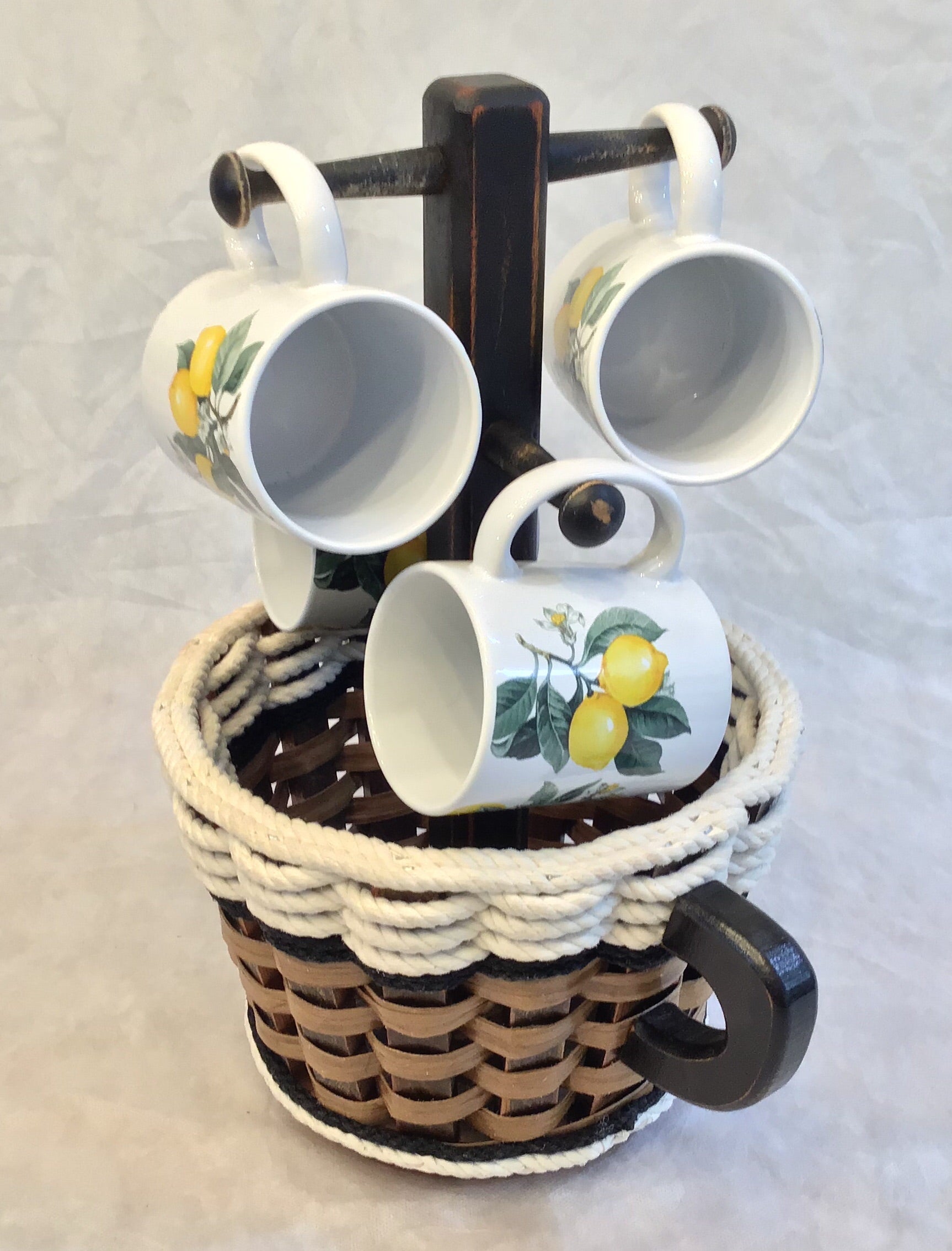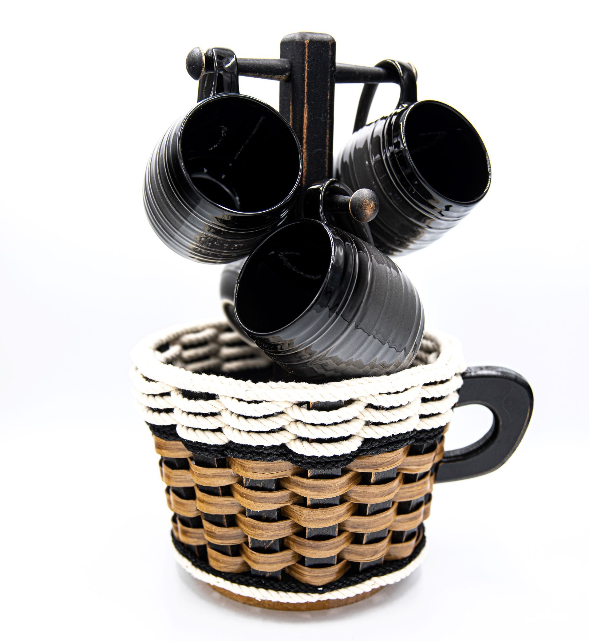 Coffee Mug Lazy Susan Basket- Cottage Black