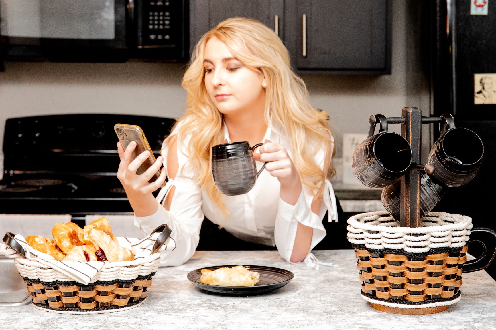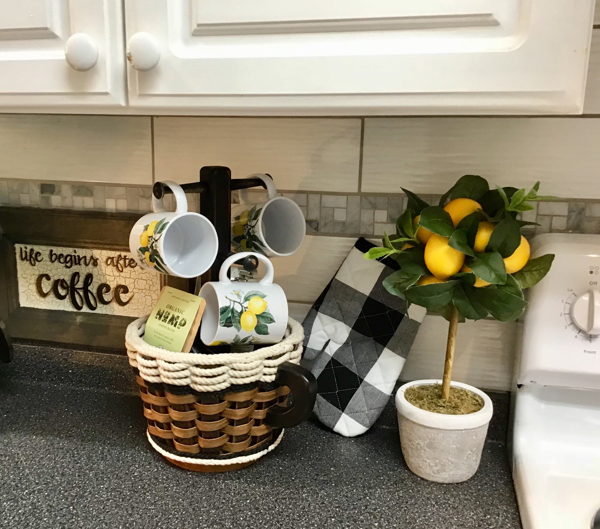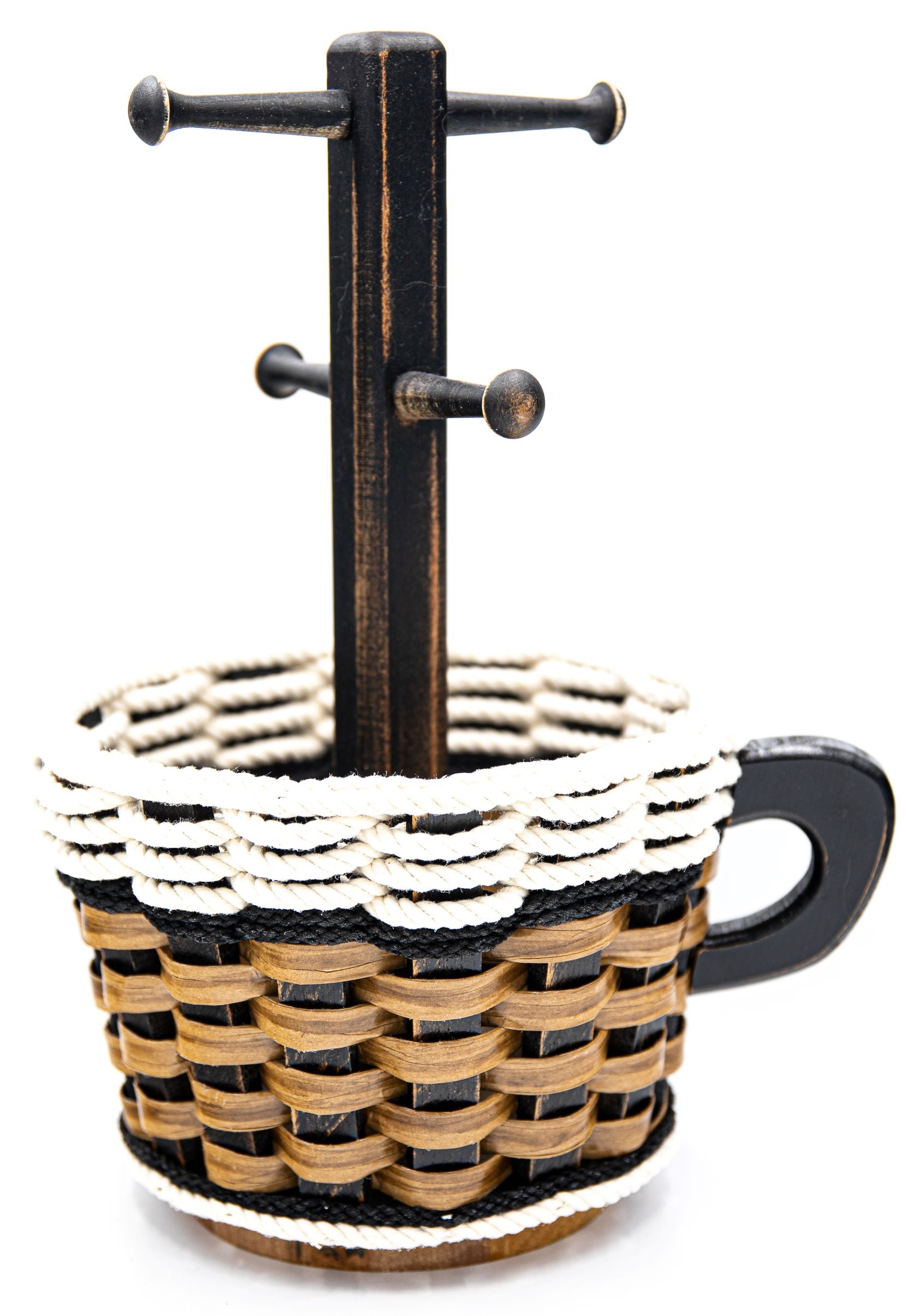 Coffee Mug Lazy Susan Basket- Cottage Black