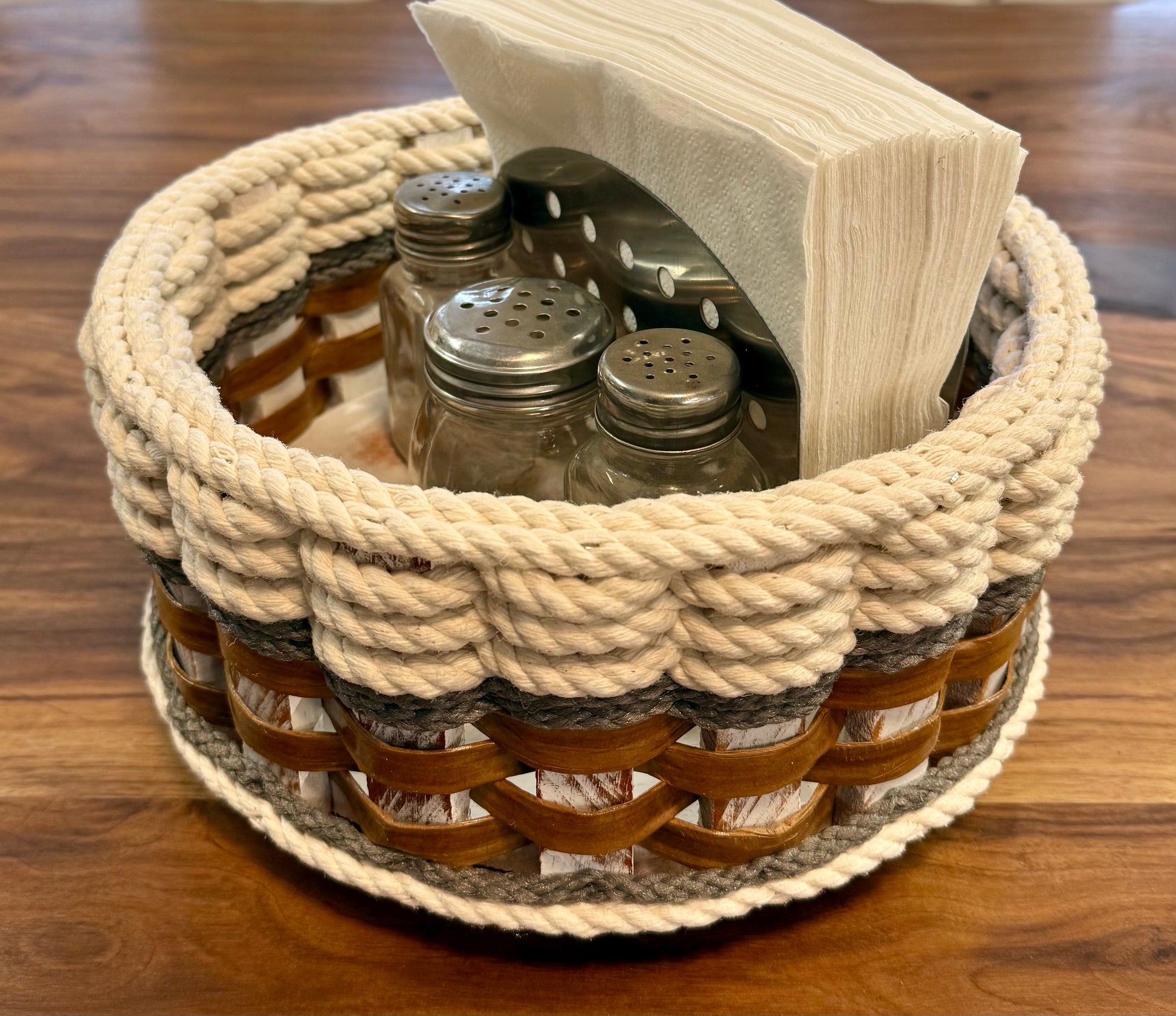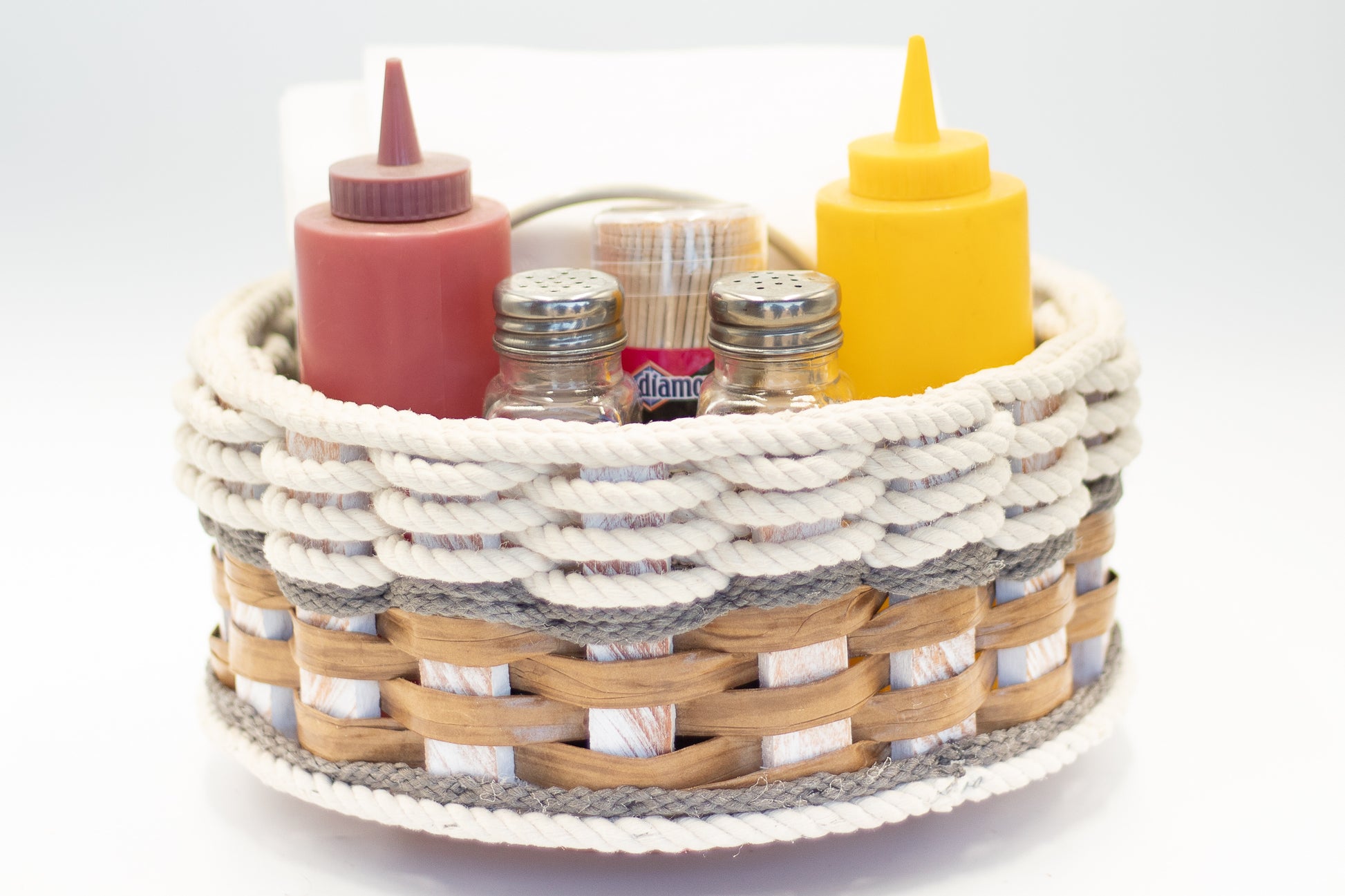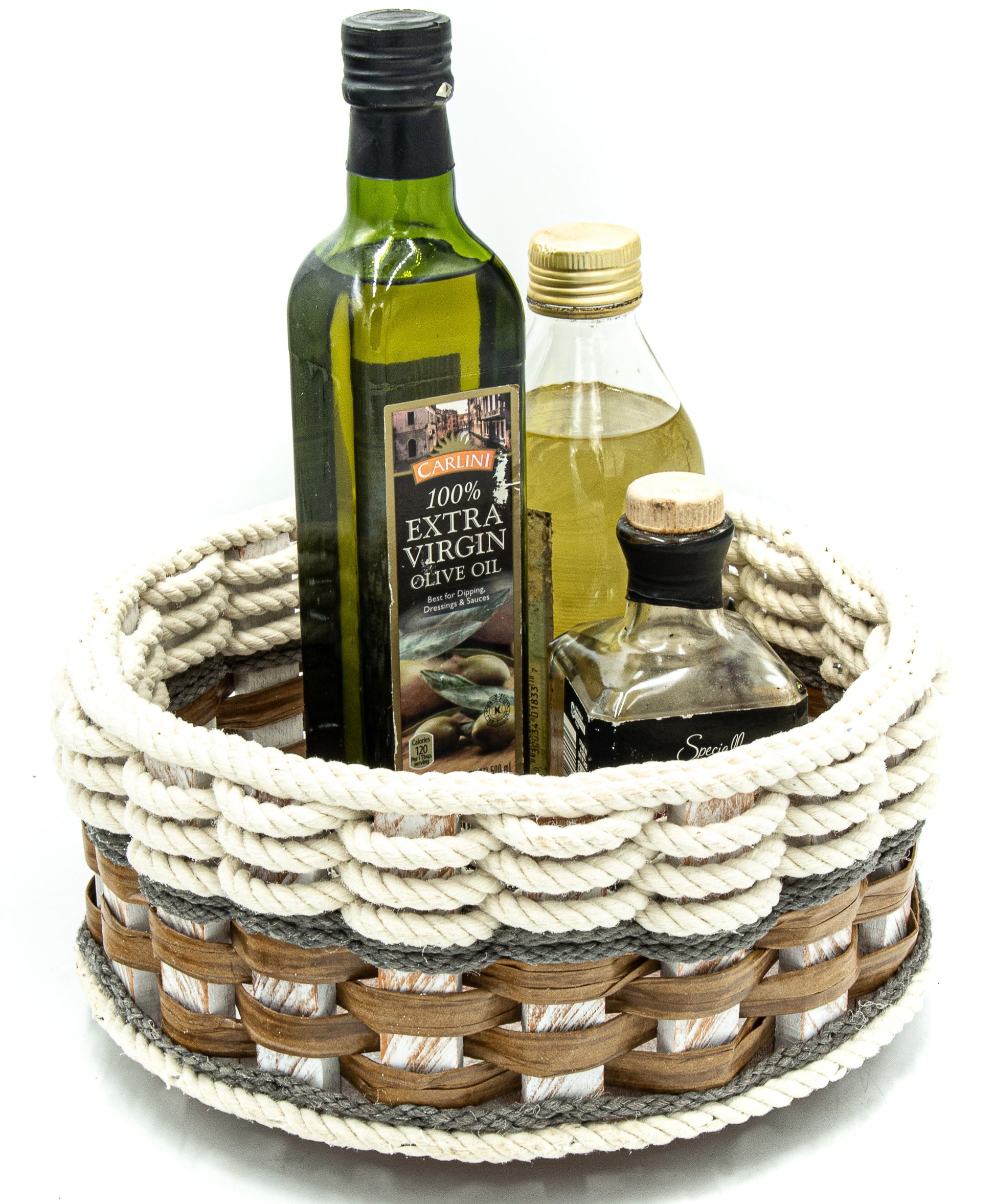 Every kitchen needs a lazy susan basket! They add a little bit of cozy but also very organizational. Keep your cooking oils and favorite spices in this beauty on your kitchen counter. Or add Fruit for that welcome and homey appeal. It is also great holding salt and pepper shakers and napkins on your breakfast table or bar. Due to its uniqueness, it makes a great gift!
