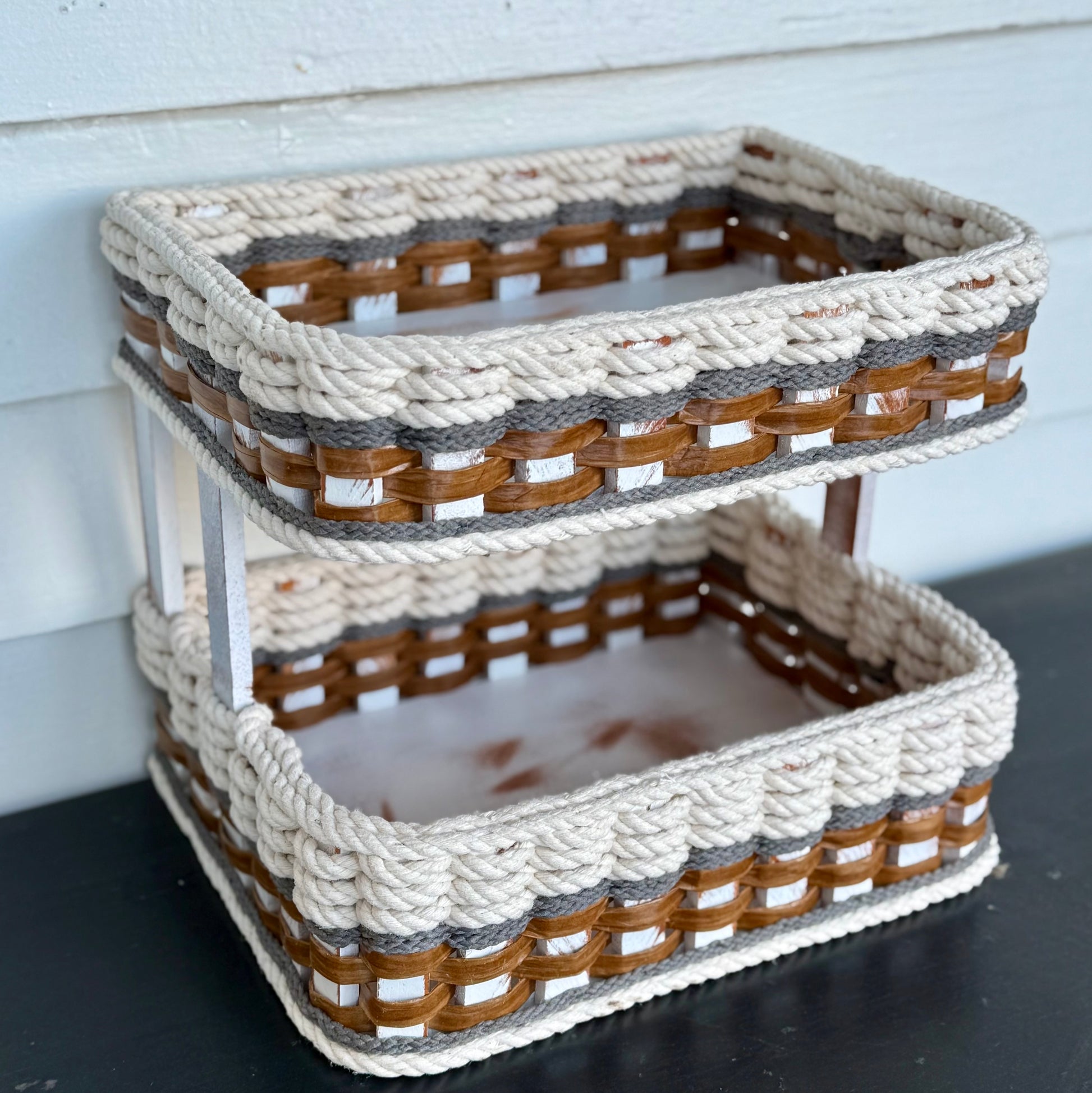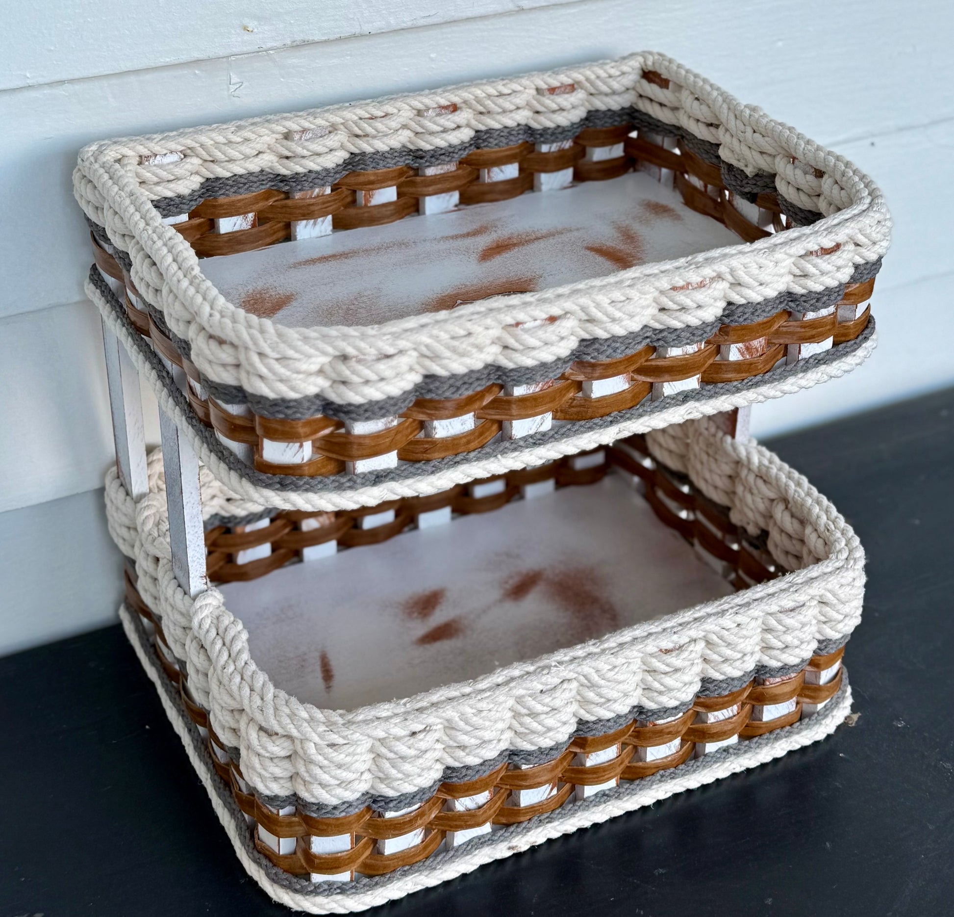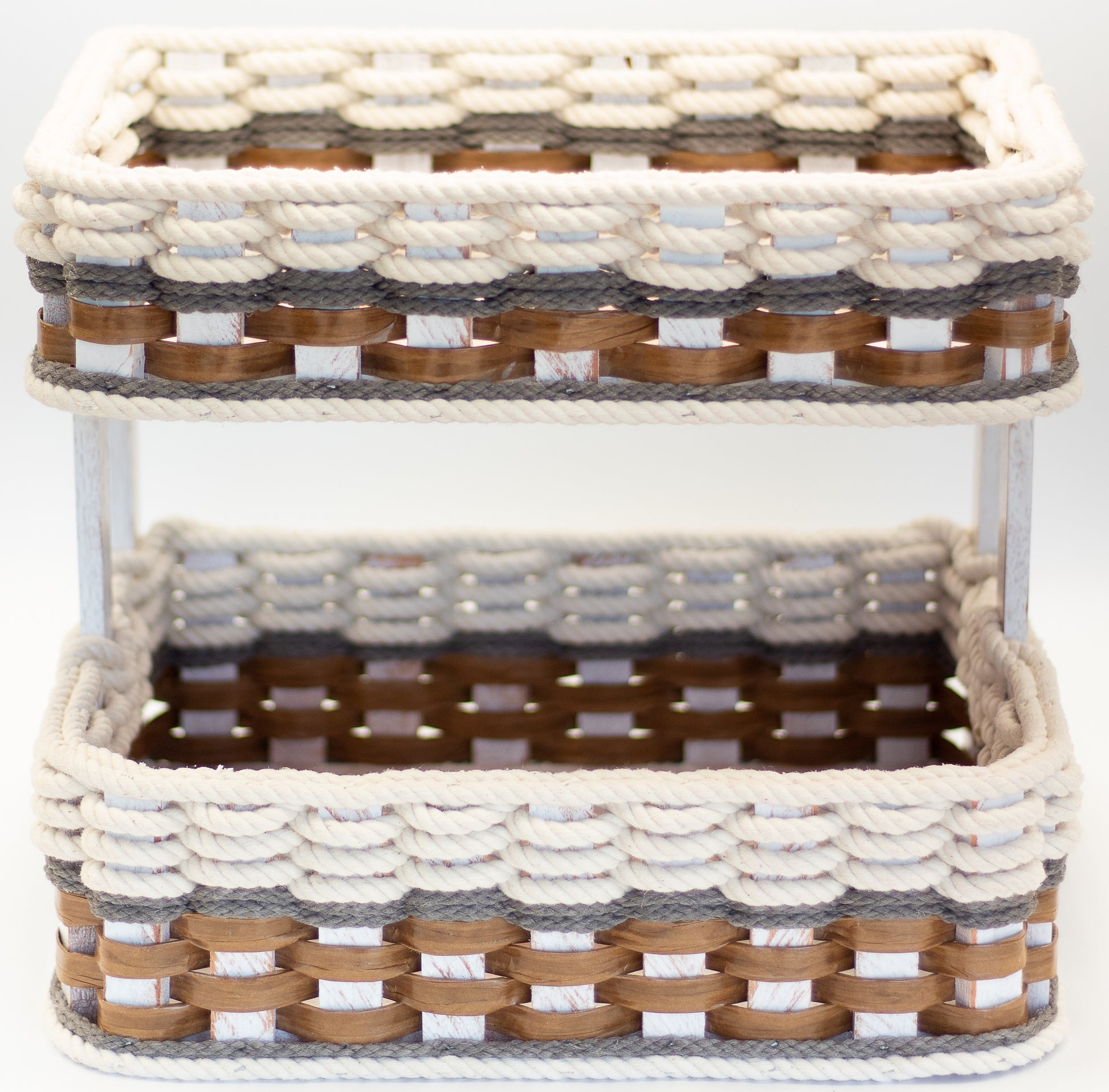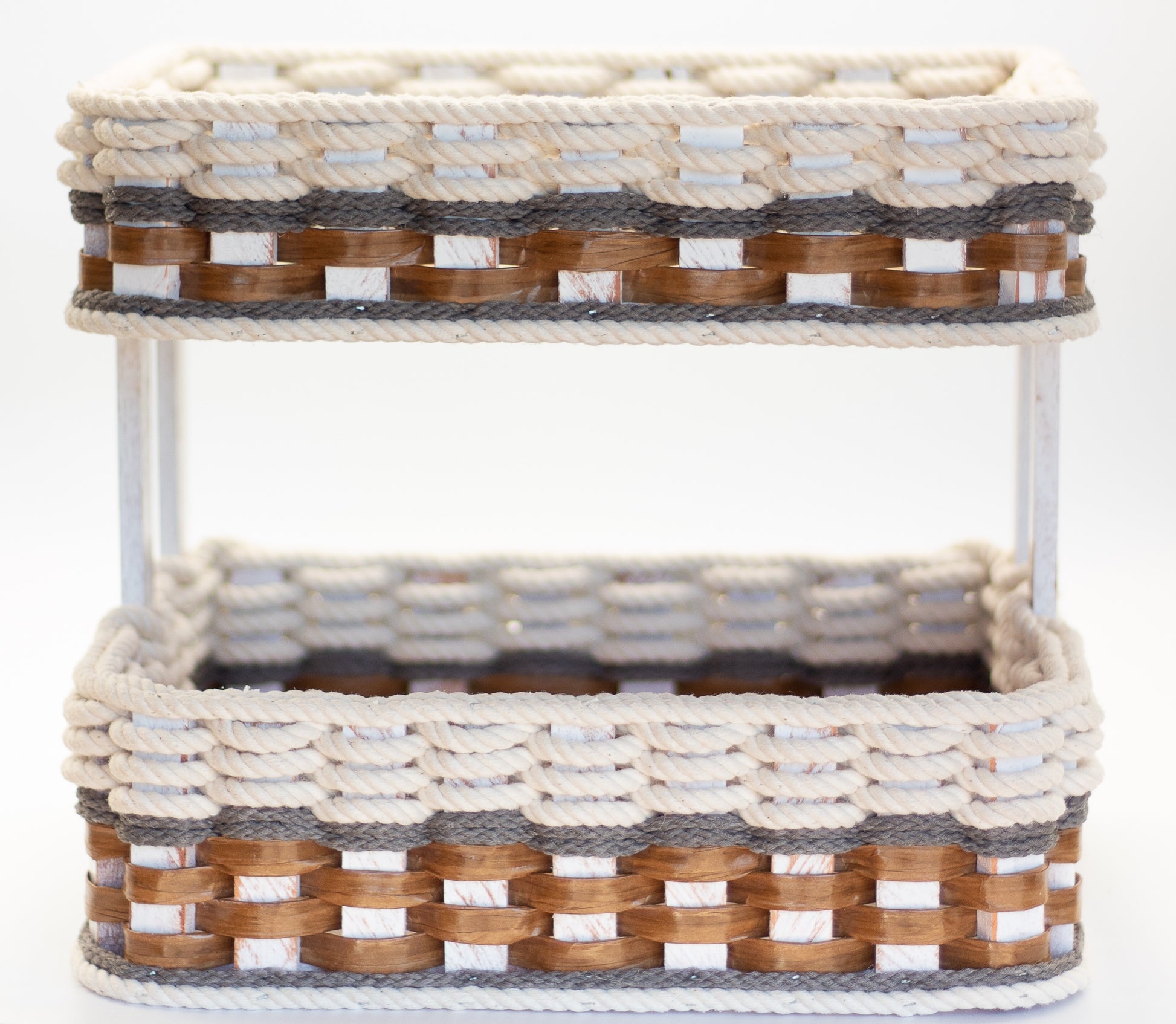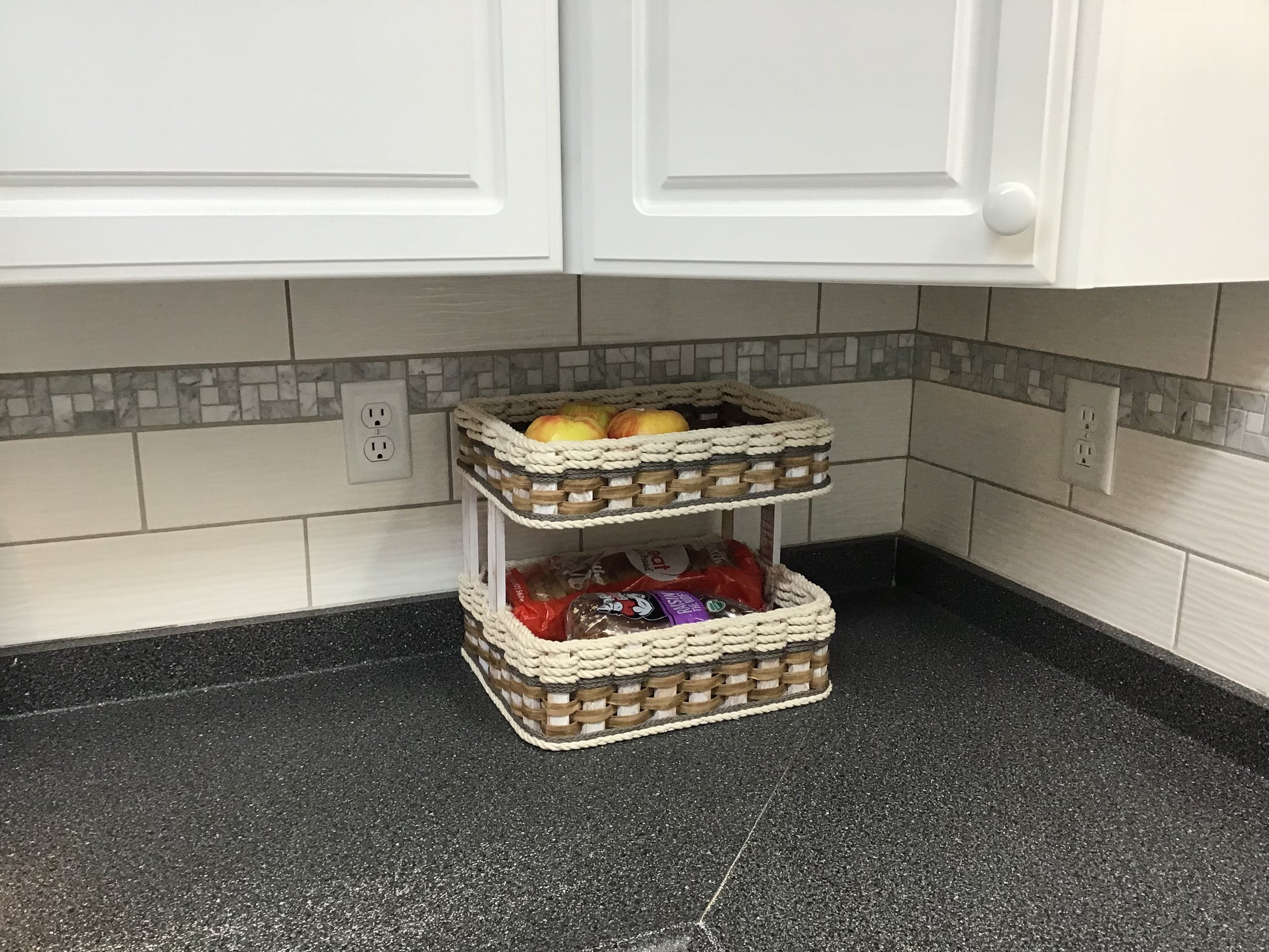 Our Double Bread basket will hold two loaves of bread on either the top or bottom basket. It is a great organizer for your kitchen since it can hold bread, bakery items, snacks, fruit and veggies, coffee products, and so much more. All with easy access and not having to hold a lid and dig around like the old conventional bread boxes. And the Cottage Grey has become our best selling style. It looks great in farmhouse kitchens.