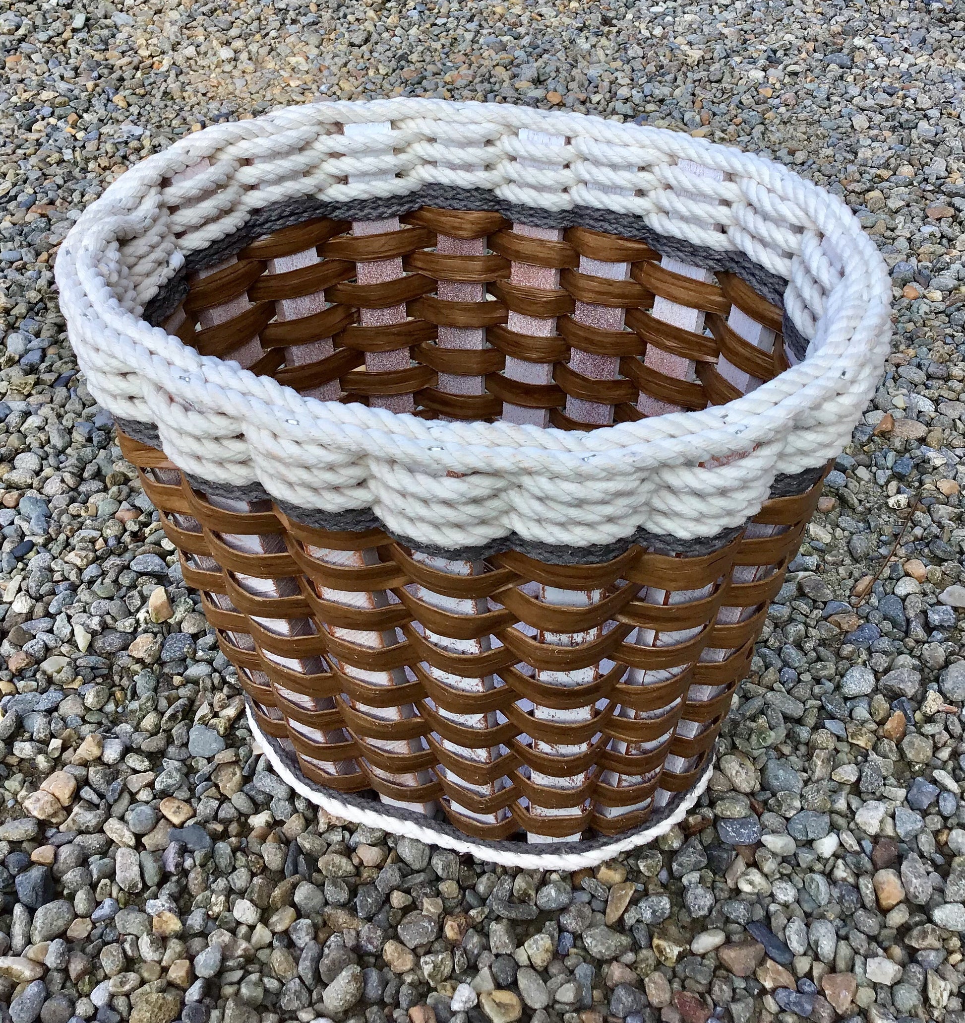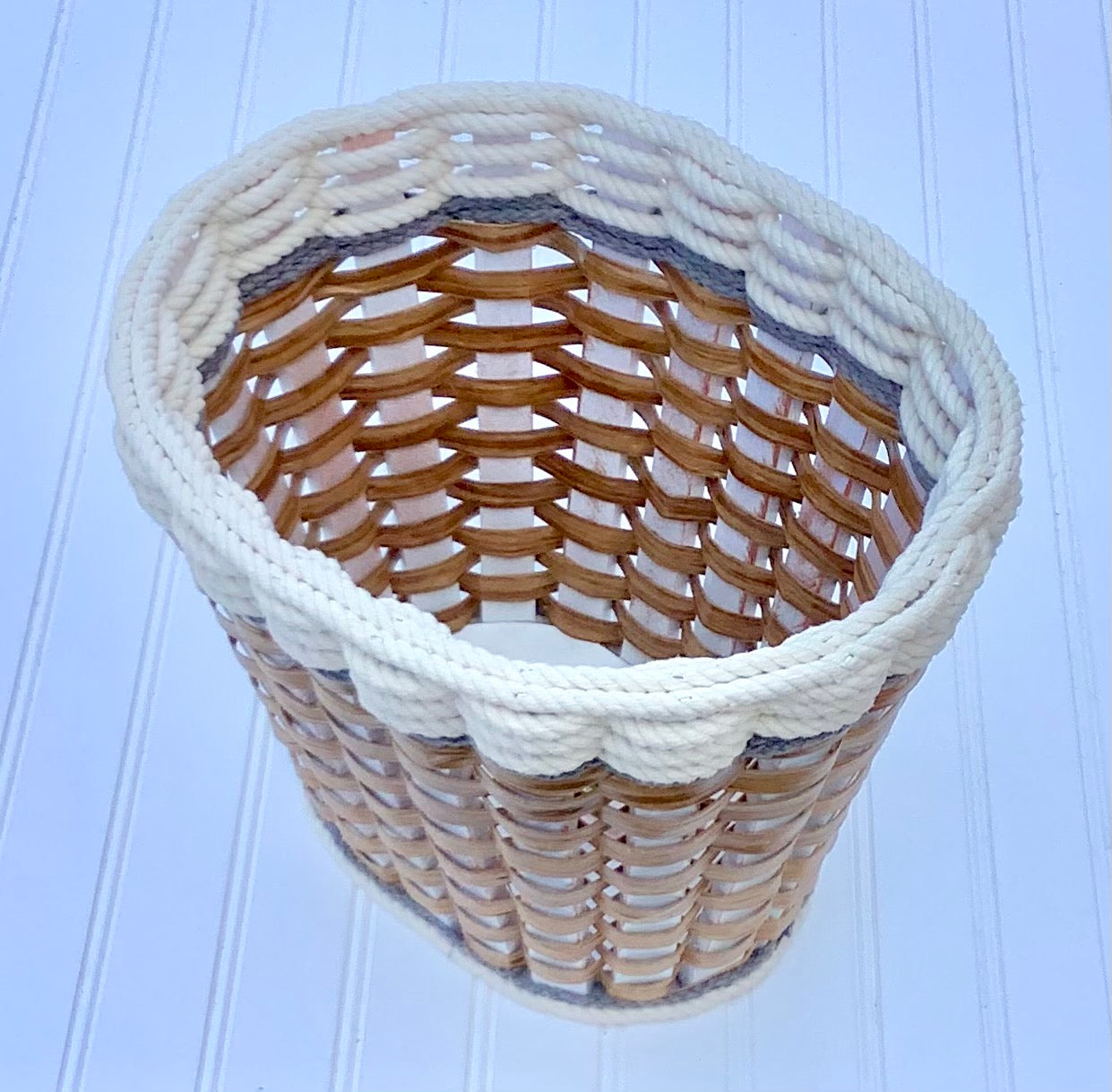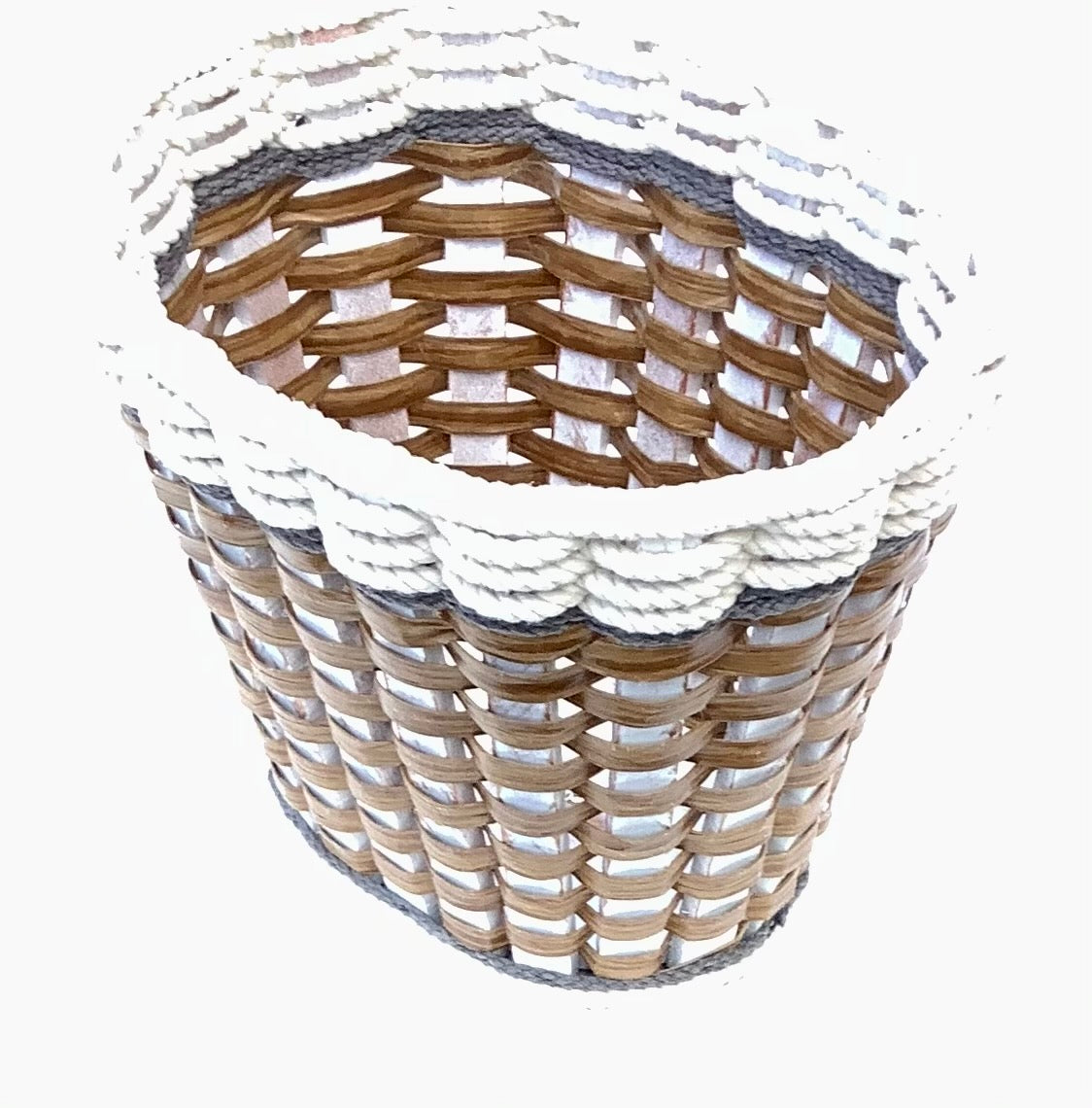 Our Cottage Grey waste basket will add character to any room. If you are using it in the bathroom then we recommend a paper grocery bag cut to the 10 inches tall and then pressed into the basket to act as a liner. (12Lx10Wx10H)