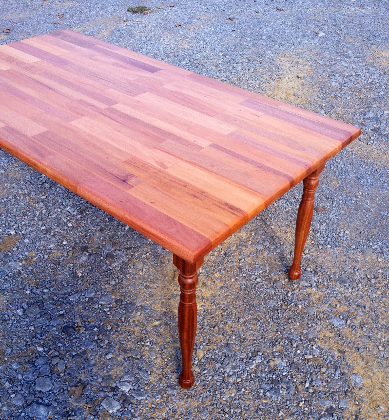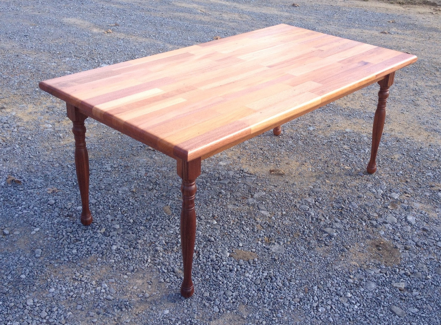If a conventional table is more your style, then this solid wood table handcrafted by us might be what you are looking for. There is no veneer in this table! The 32 x 66 table top is solid mahogany as well as the legs. If you notice the number of joints in the wood, we start by using recaptured mahogany that comes in 19 inch length pieces and we hand pull each piece for your handcrafted table. We are very proud of the fact that we recycle such beautiful wood! Allow 12 to 16 weeks for delivery. Whatever size table you need we can make it just for you!