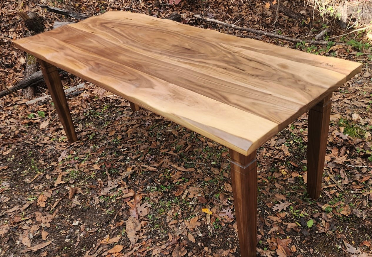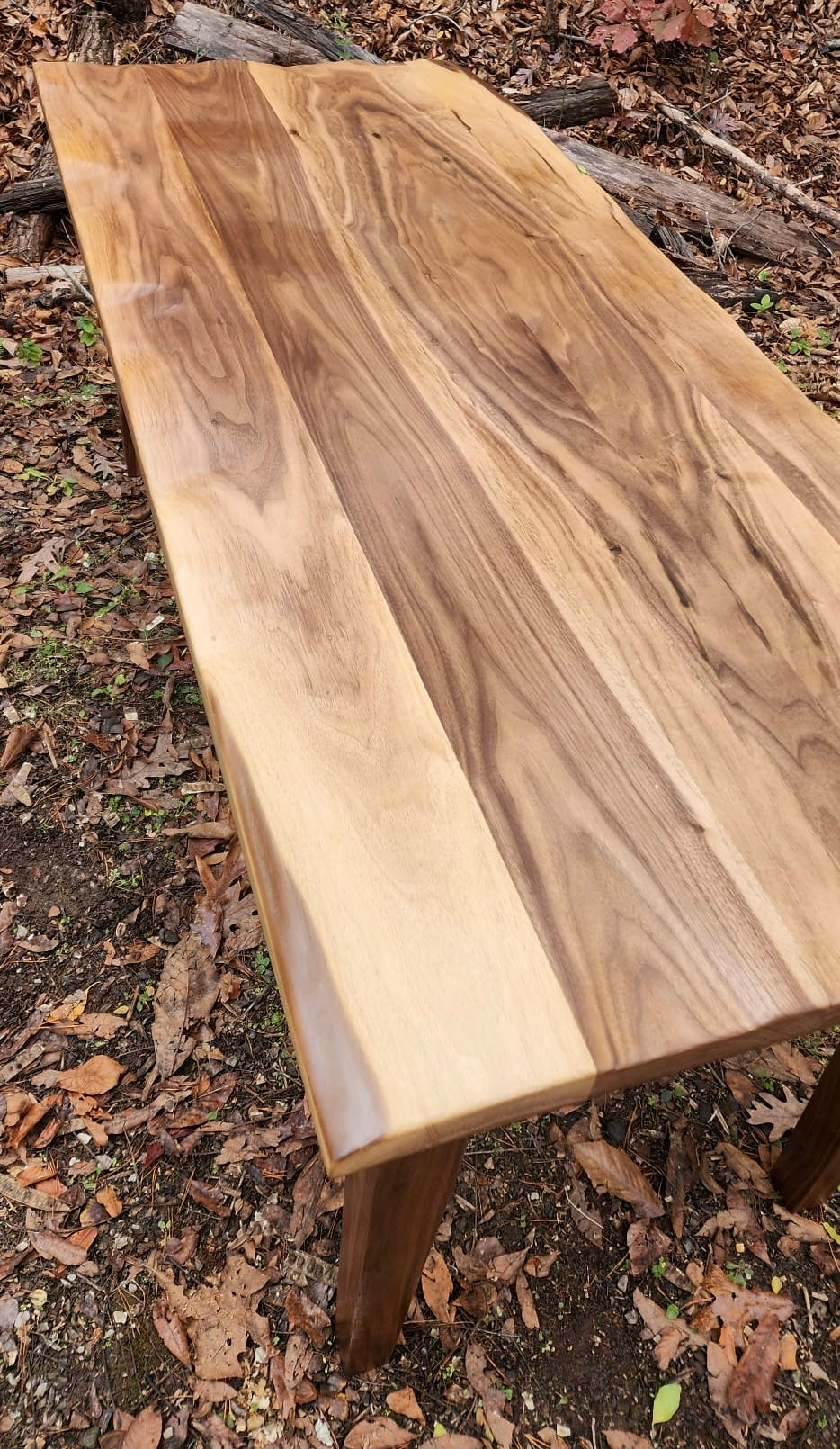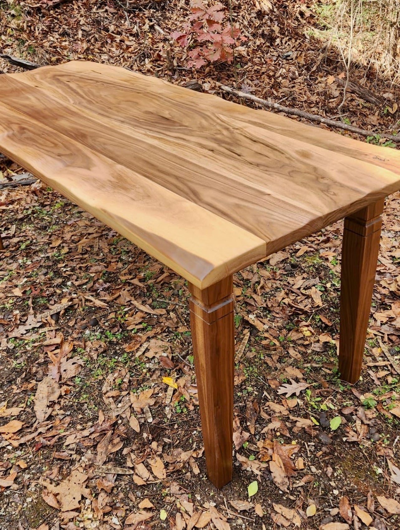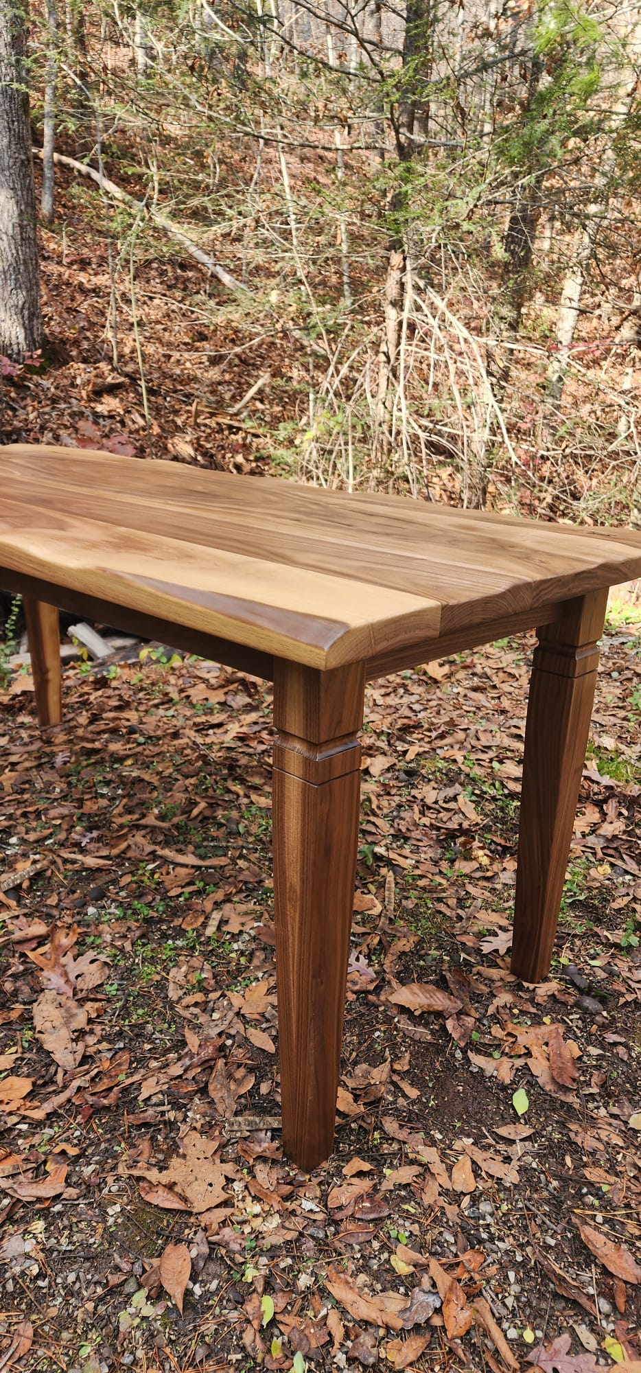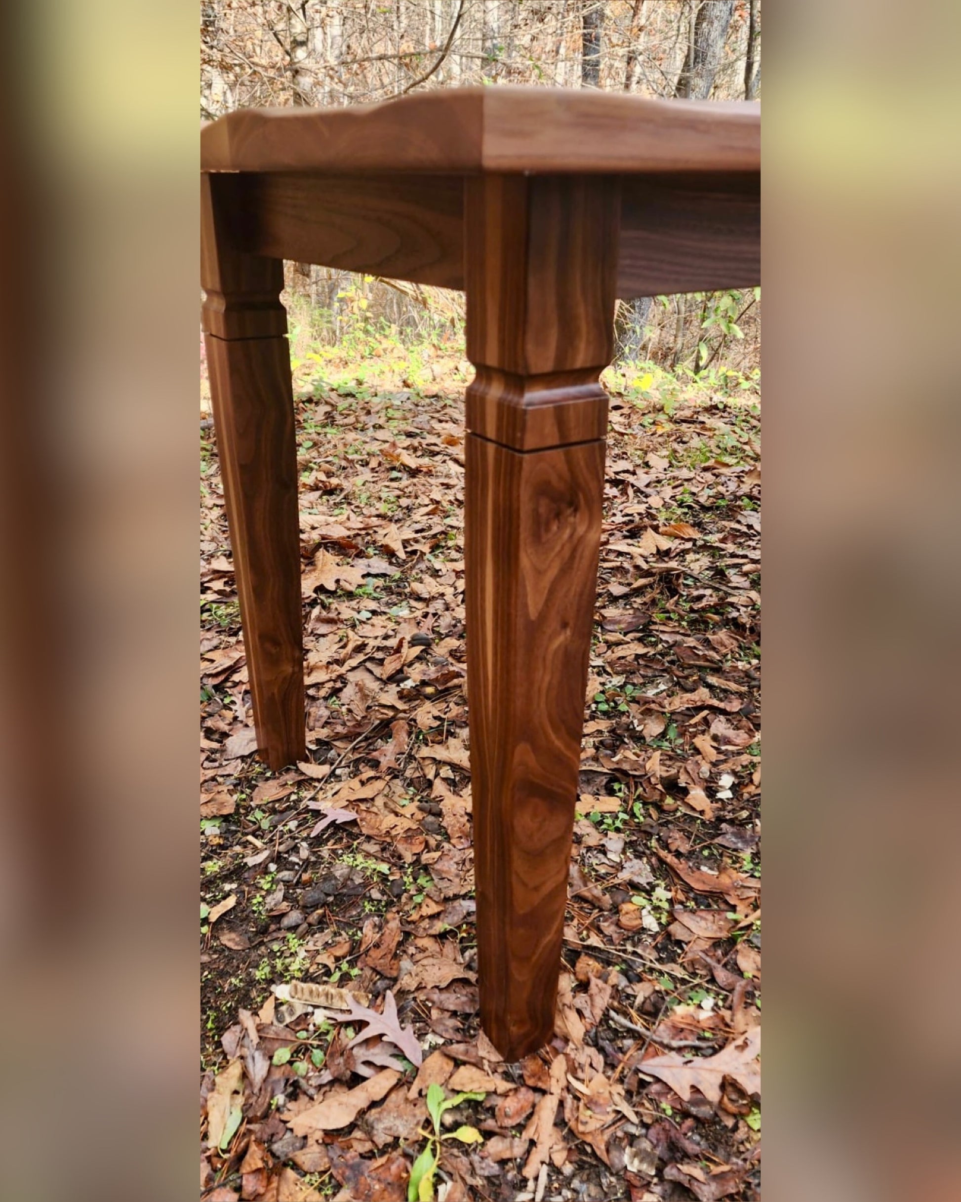 If you want a heirloom solid wood table and you love American Black Walnut then our family would love to handcraft your family this beautiful walnut dining room table with solid walnut table legs. We waned the edges on the walnut and some of the edges are natural.