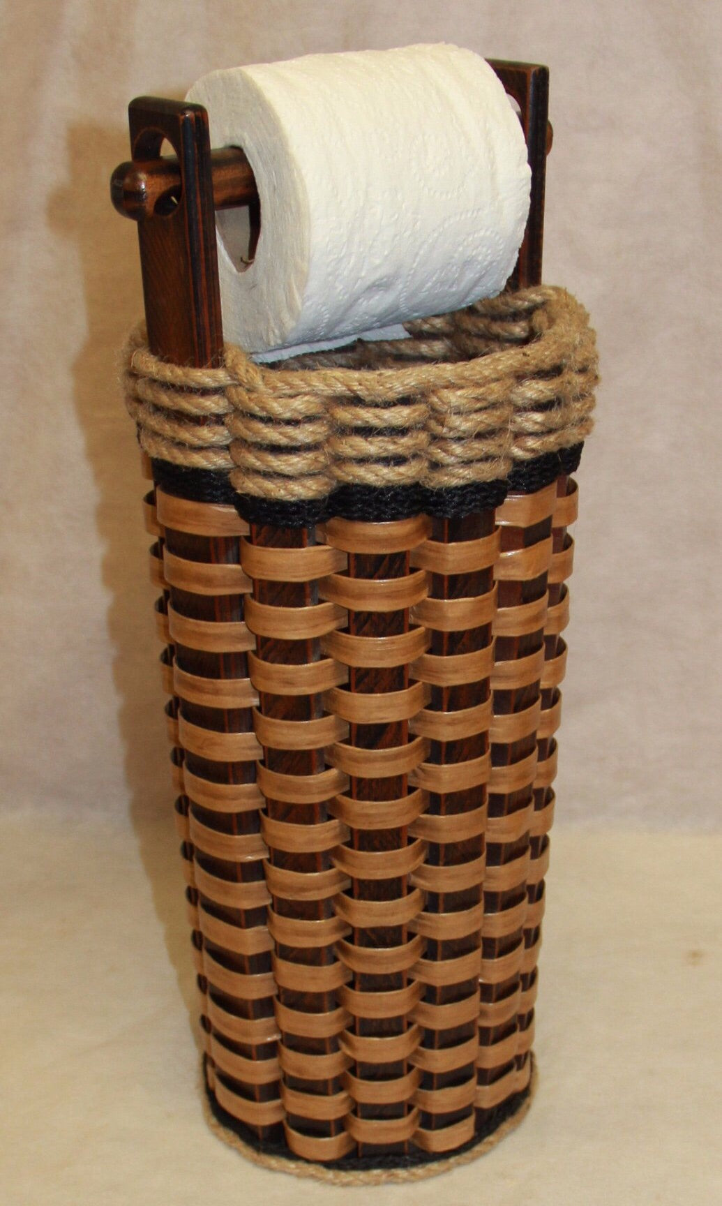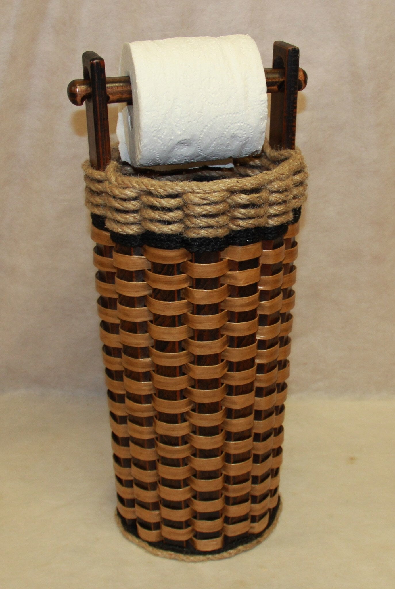 The toilet paper with dowel basket works great in your bathroom, allowing your walls to be hole free. Especially works great with tile walls! It holds three double rolls inside and one on the dowel. Does not fit triple Charmin rolls. Call to custom order sizes.